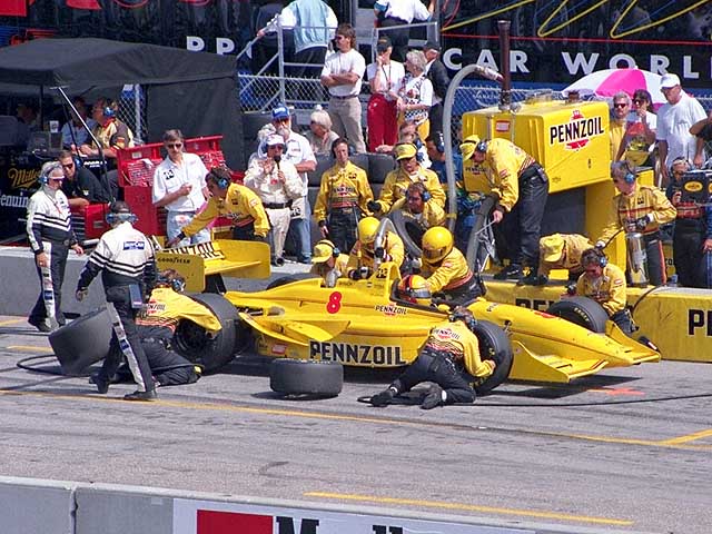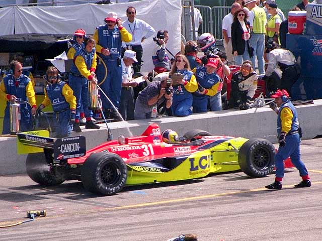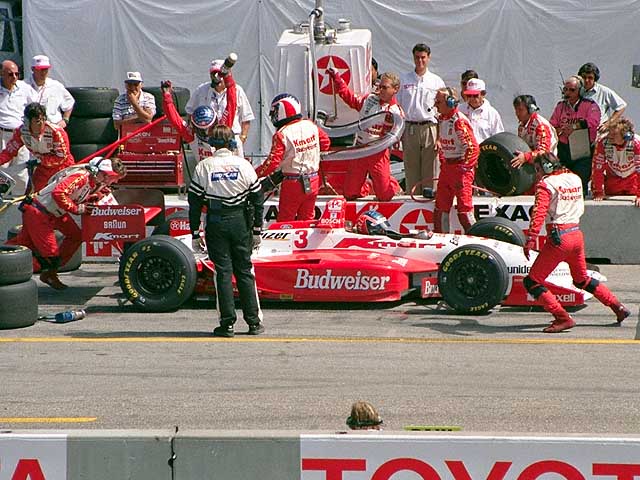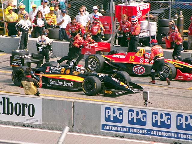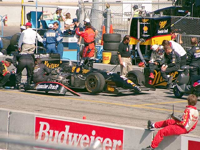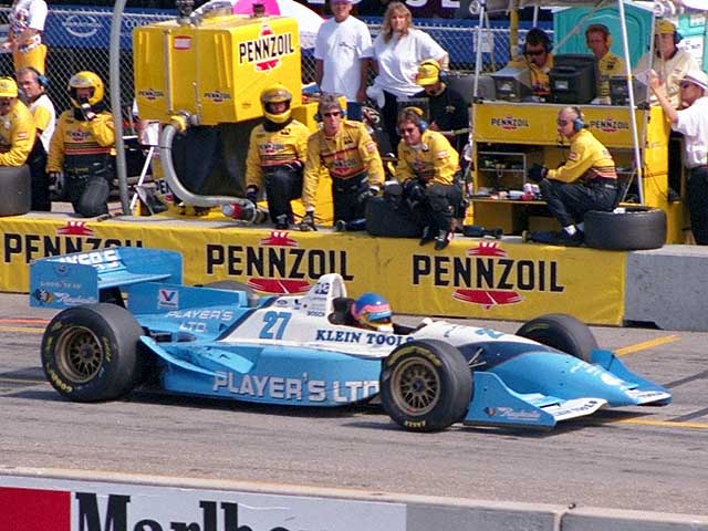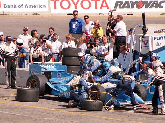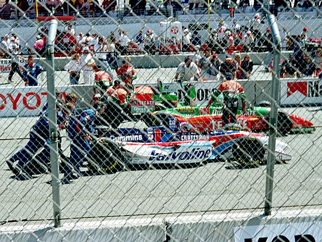 Photos from the 1995 Toyota Grand Prix of Monterey, Laguna Seca, California. This year we had grandstand seats on the front straight which gave us an excellent close-up view of the action, but the wire fence made it not so good for photos. Fortunately, Pete Coe brought his massive zoom lens and could get some good shots from the top of the stand. All photos are by him, except the first. |