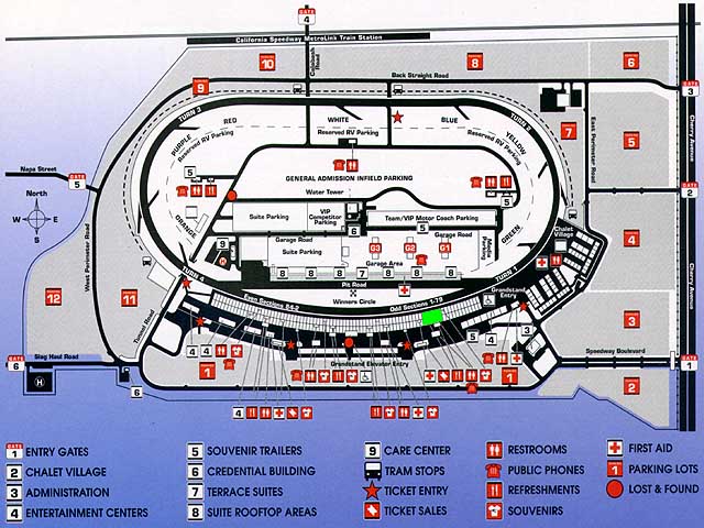 My first trip to an oval track race was to the California 500 on September 27 and 28, 1997. Located in Fontana, just east of Los Angeles, the brand new California Speedway turned out to be the fastest circuit in the world, with Mauricio Gugelmin setting a new world record during qualifying. | |