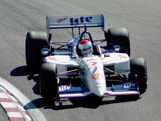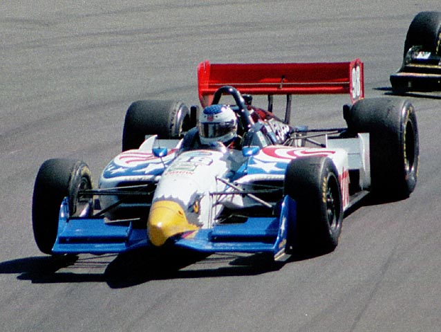 and Unser. Then on the lap 77 restart Pruett (right) and de Ferran