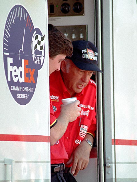Jimmy Vasser hangs out with Gary Gerould of ABC/ESPN as the race