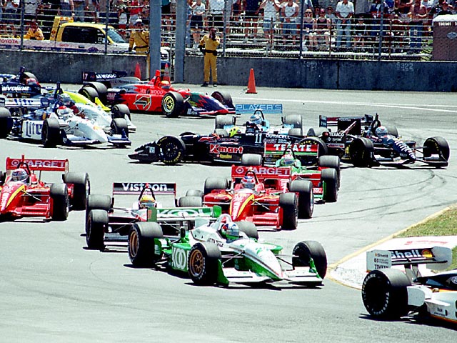 Bryan Herta makes a good start ahead of Dario Franchitti, but Greg Moore is in an over-optimistic mood,