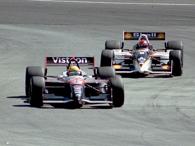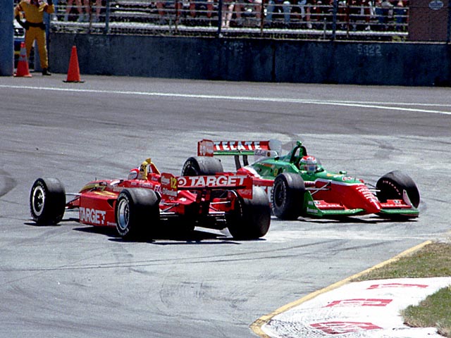Fernandez tries to slip down the inside of Vasser on the entrance