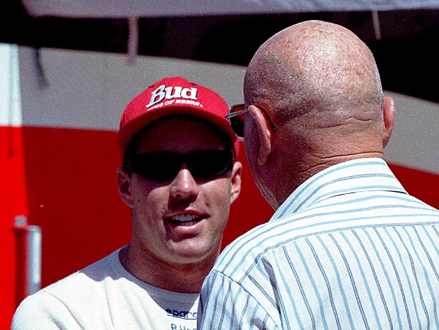 Richie Hearn, driver of the Dell Penna Budweiser car, chats with a