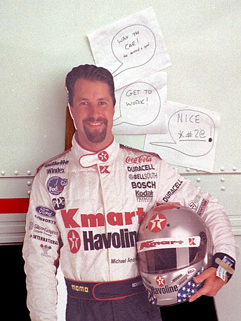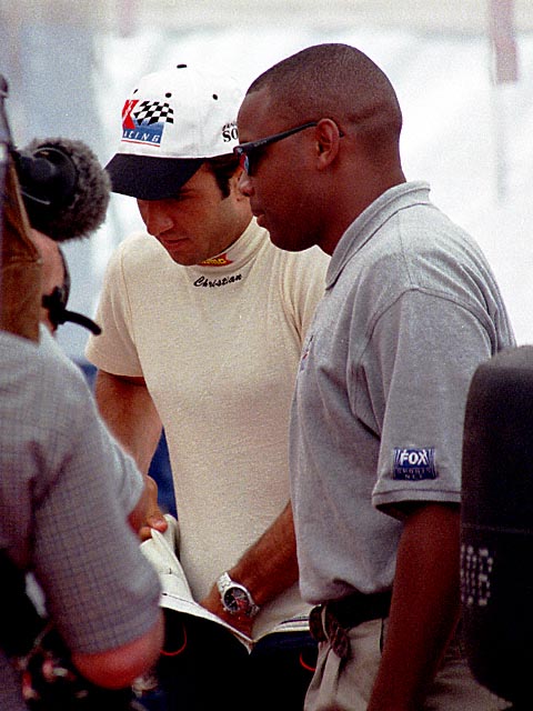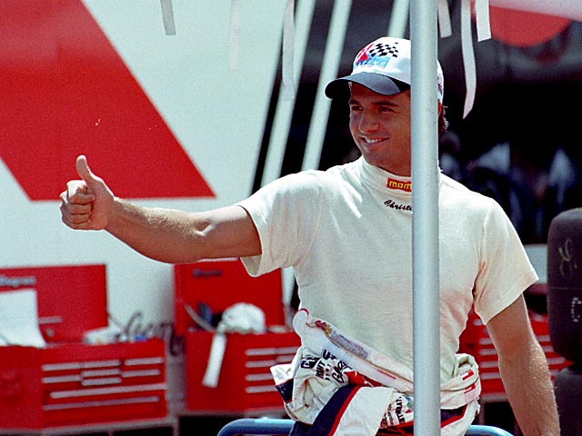 Christian Fittipaldi in the Newman-Haas garage give the thumbs-up