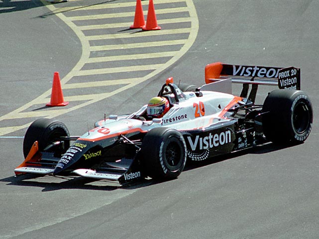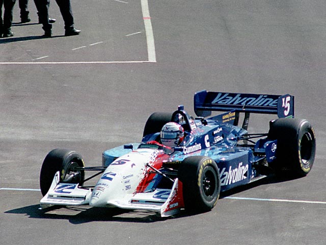 Robby Gordon enters the pit lane in his Toyota-powered Reynard.