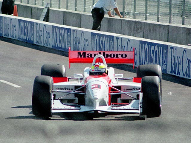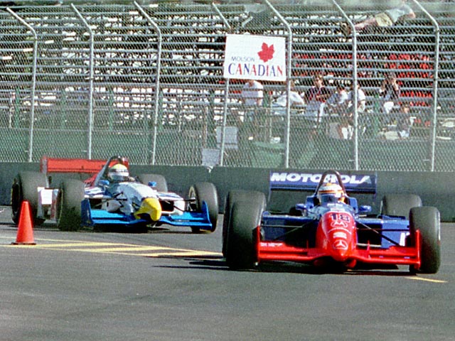 Andre Ribeiro takes his Penske-Mercedes into the turn.