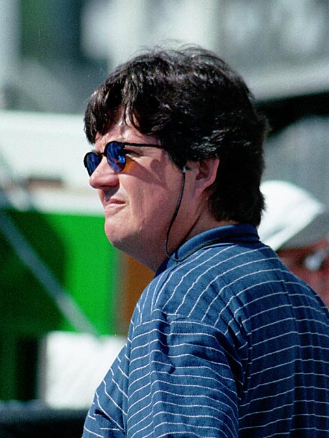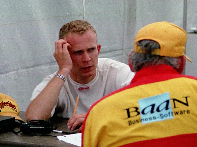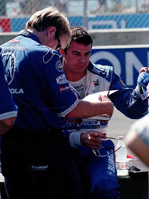 With practice over, Mark Blundell sits on the pit wall and reflects
