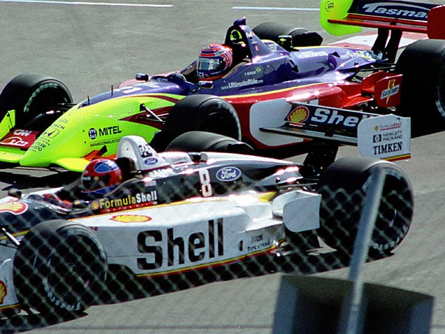 In the second qualifying group Mark Blundell leads Alex Barron in