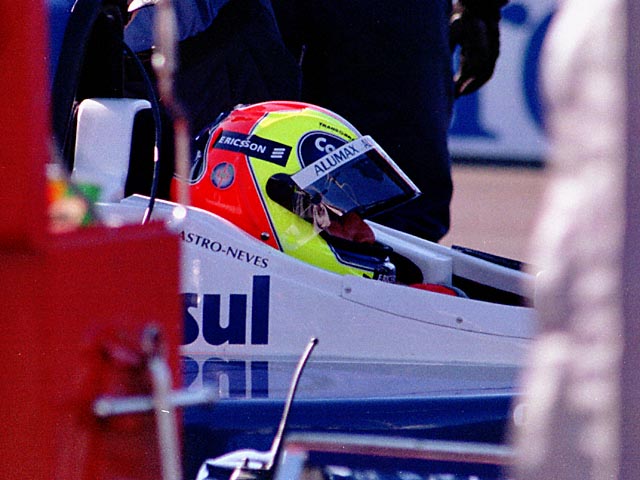 Mauricio Gugelmin looking happy despite a poorly handling car: