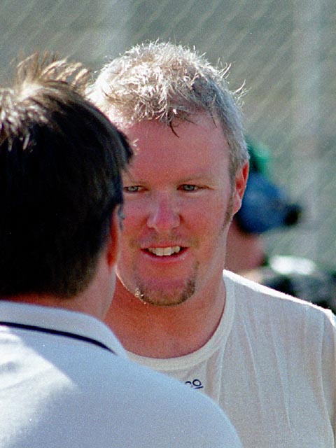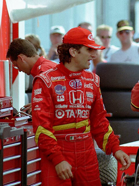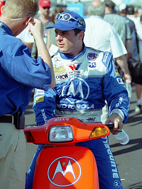 Jimmy Vasser climbs onto his Honda motorbike to head back to the