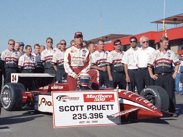 sitter Scott Pruett, poses with his team, including owner Bobby Rahal.