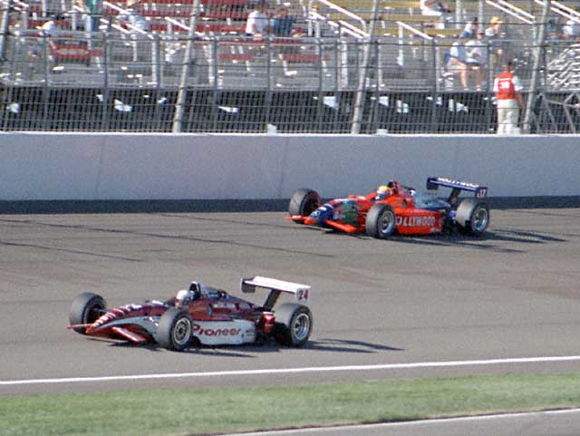 Robby Gordon in the Menard-sponsored Eagle-Toyota. Note the Day-Glo