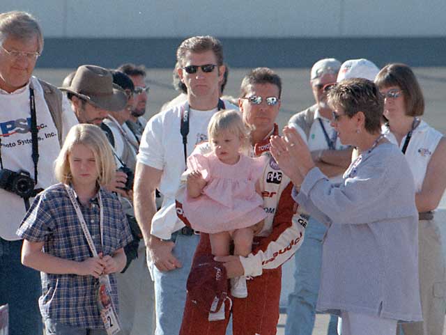 Pole sitter Scott Pruett with his wife, Judy, and two (nearly three)