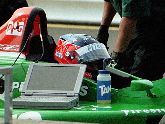 Meanwhile eventual race winner Gil de Ferran was concentrating on