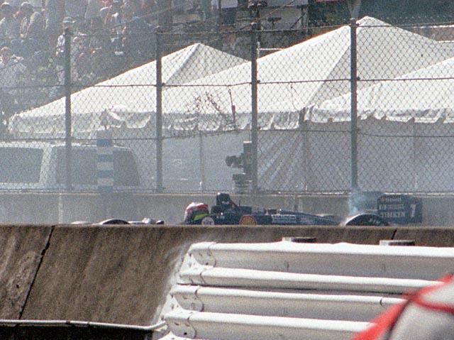 Montoya comes by. Some of those are his tire tracks. After being fast