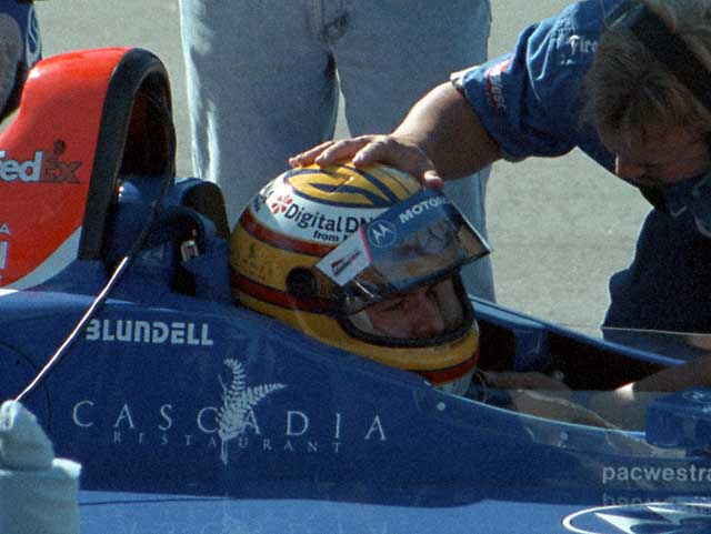 Back in the driving seat at PacWest, Mark Blundell slips on his